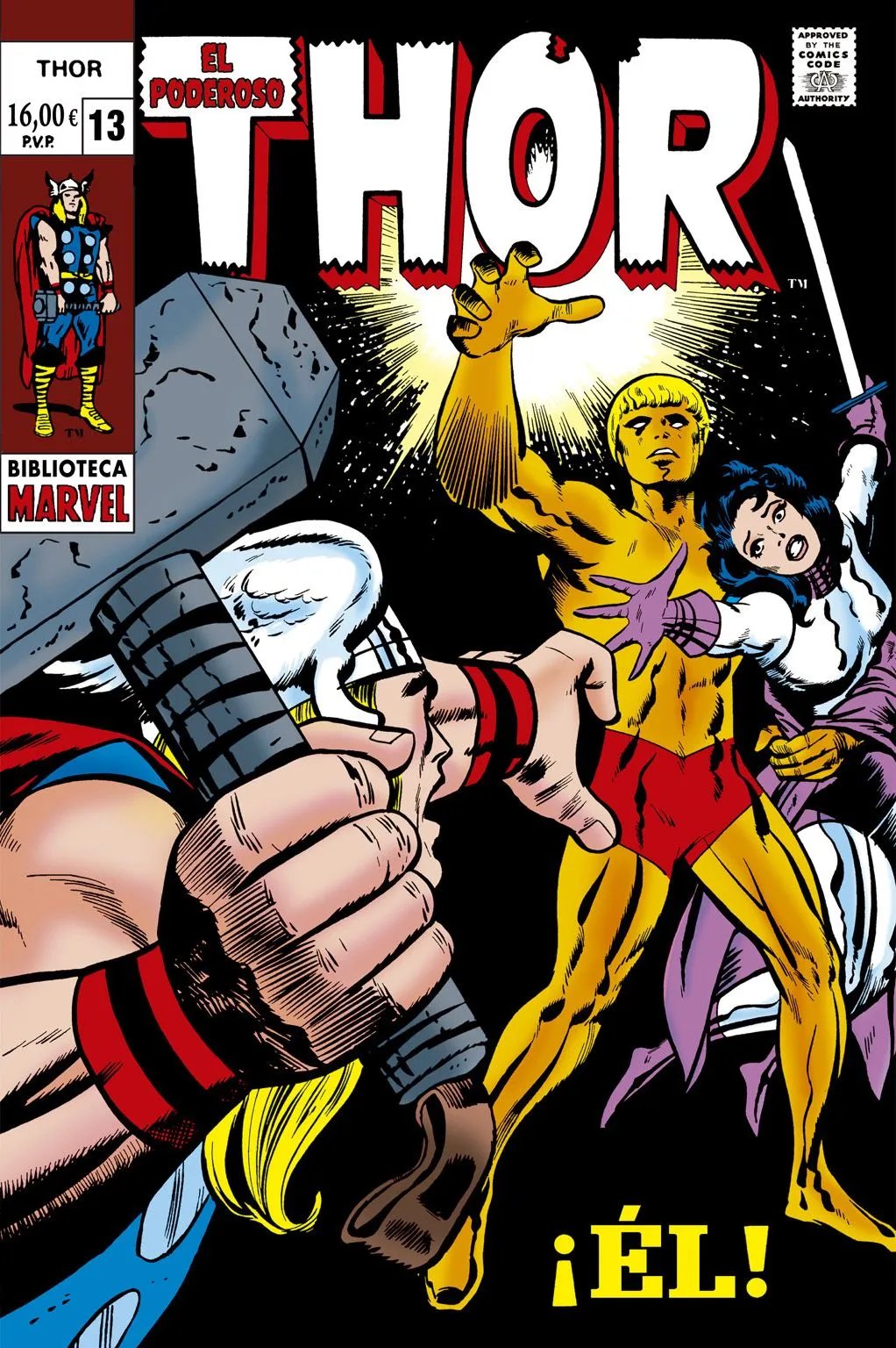 Guión: Stan Lee. Dibujo: Jack Kirby. Comentario: Un nuevo volumen dedicado al Dios del Trueno, que continúa los acontecimientos narrados en Marvel Gold. El Poderoso Thor: En mis manos... ¡Este martillo! Llegamos al momento cumbre de la inolvidable etapa de Stan Lee y Jack Kirby, en que Jane Foster desapareció de la serie para dar paso a Lady Sif, el nuevo amor del Hijo de Odín. Mientras, Thor debe superar las maquinaciones de su malvado hermanastro Loki, que le llevarán a quedarse desterrado en la Tierra sin sus poderes divinos. Además, el regreso de Mangog, en una gigantesca saga en la que el Ragnarok llama a las puertas, la llegada de Ulik el Troll y Réplicus y la presencia de Kang, el Super-Skrull, el Destructor, y muchos más. El resultado: un Omnigold imprescindible, en el que aumentan hasta el infinito la espectacularidad y magnificencia de los lápices de Jack Kirby y de las gigantescas epopeyas de Stan Lee. ![]()